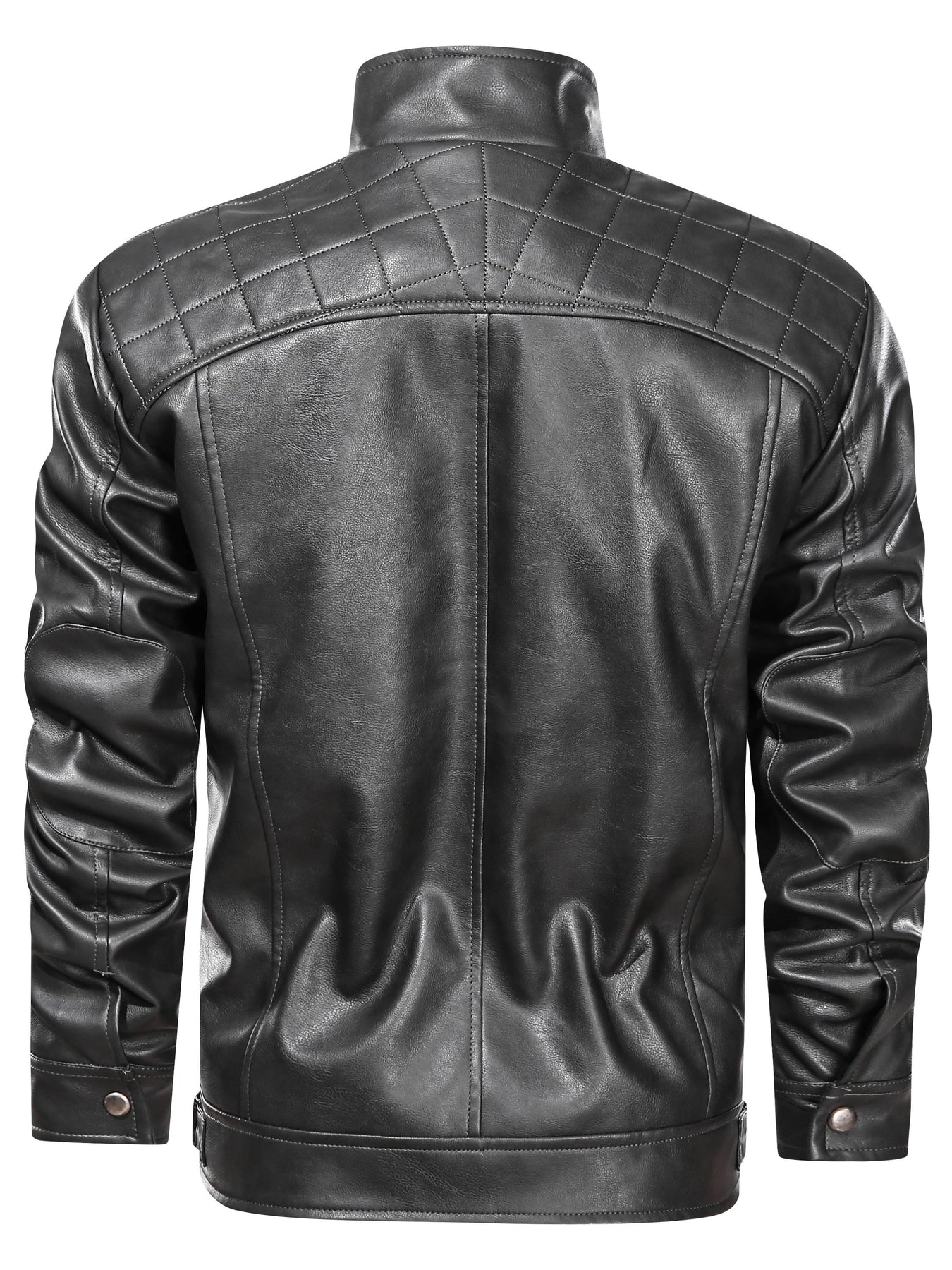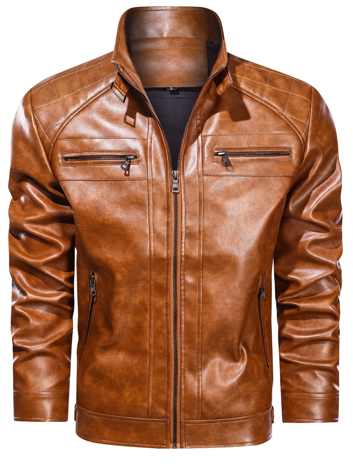 • Moto-style design: Quilted shoulder panels and bold zipper accents create a contemporary biker look.